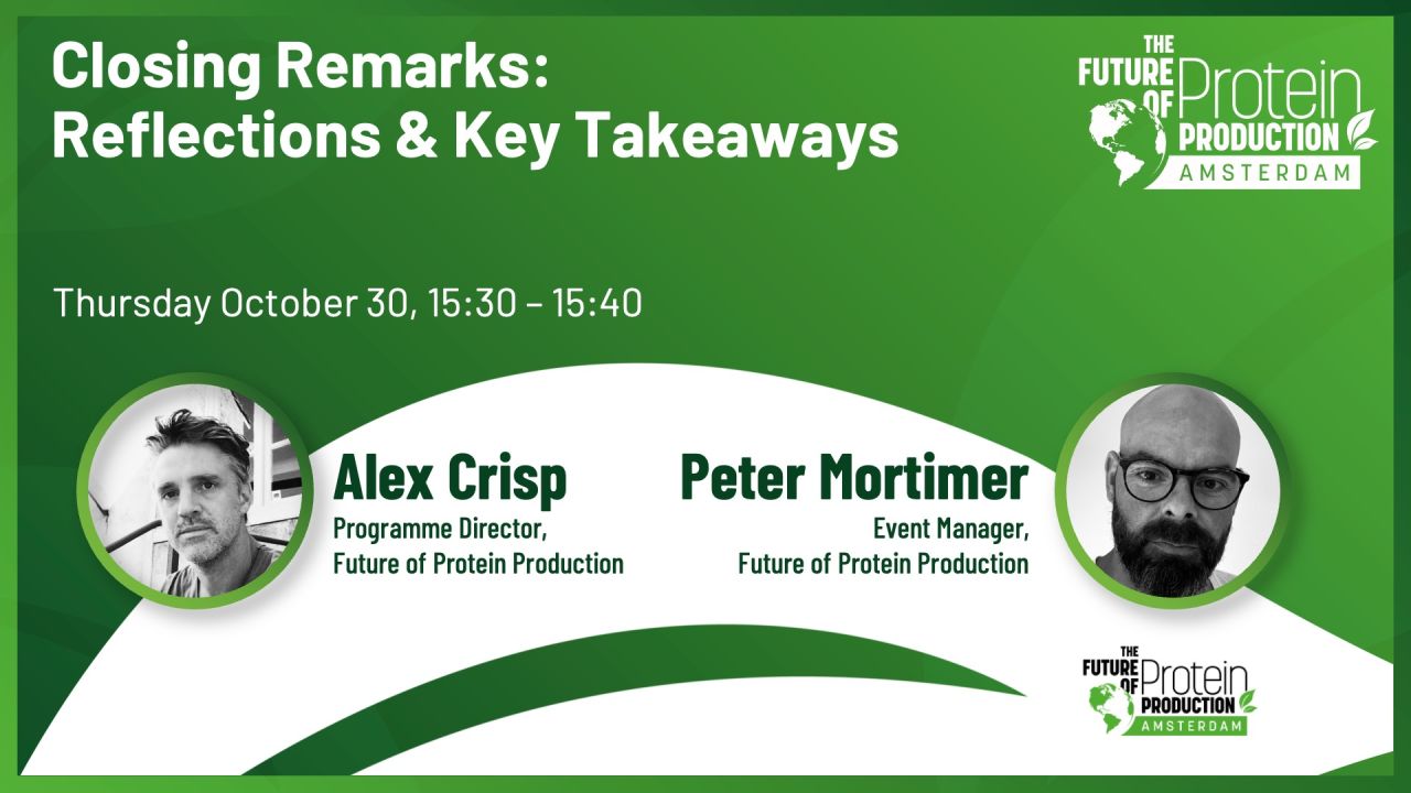 To conclude The Future of Protein Production Amsterdam, Peter Mortimer, Event Manager, and Alex Crisp, Program Director, will come together to reflect on two days of cutting-edge insights and impactful discussions.